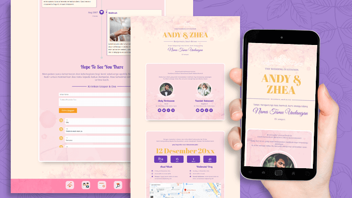 Buat dan bagikan undangan pernikahan kamu dengan berbagai pilihan tampilan undangan yang kekinian, membuat pernikahanmu makin berkesan dengan berbagai macam desain undangan yang menarik dan tampil baik di semua perangkat digital.